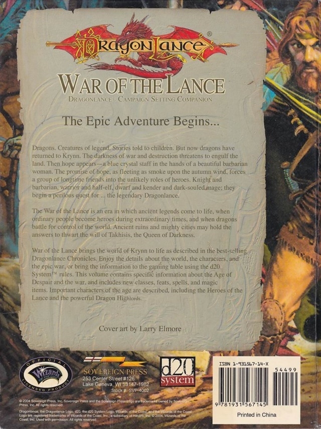 Dragon Lance Campaign Setting Companion: War of the Lance - DnD 3.5