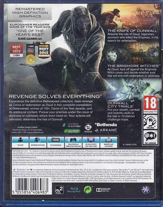 • Brugt Dishonored Definitive Edition til PS4 kommer med æske.