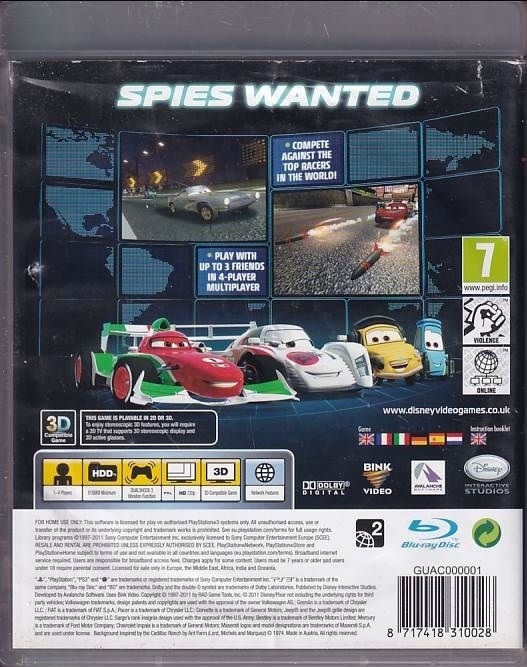 • Brugt Disney Pixar Cars 2 til PS3 kommer med æske og manual.