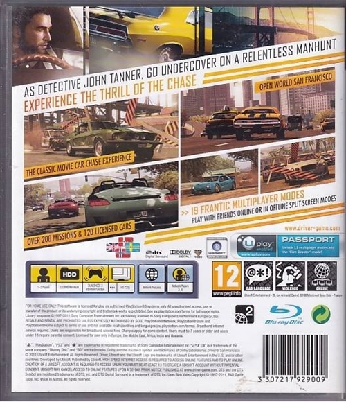 • Brugt Driver: San Francisco til PS3 kommer med æske og manual.
