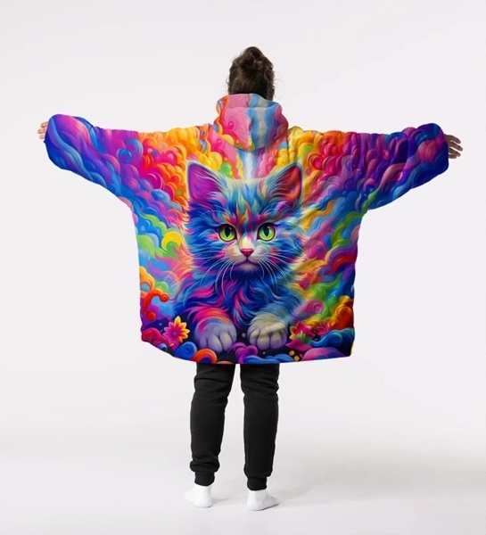 Huggie - Rainbow Kitty - Giant Blanket Hoodie - Kæmpe Tæppe Hættetrøje