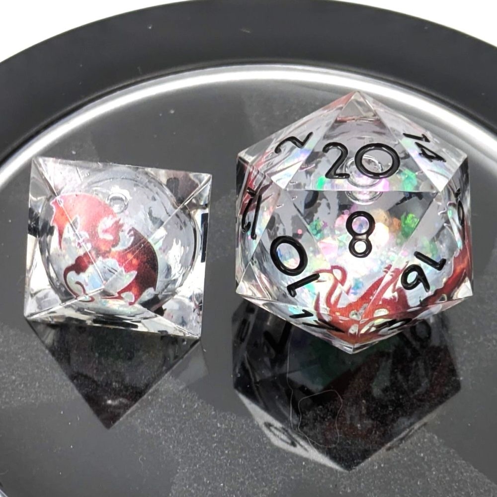 Liquid Core Dragon Dice - Crystal black numbers - Resin dice set sharp edges - Epic Dwarf Dice