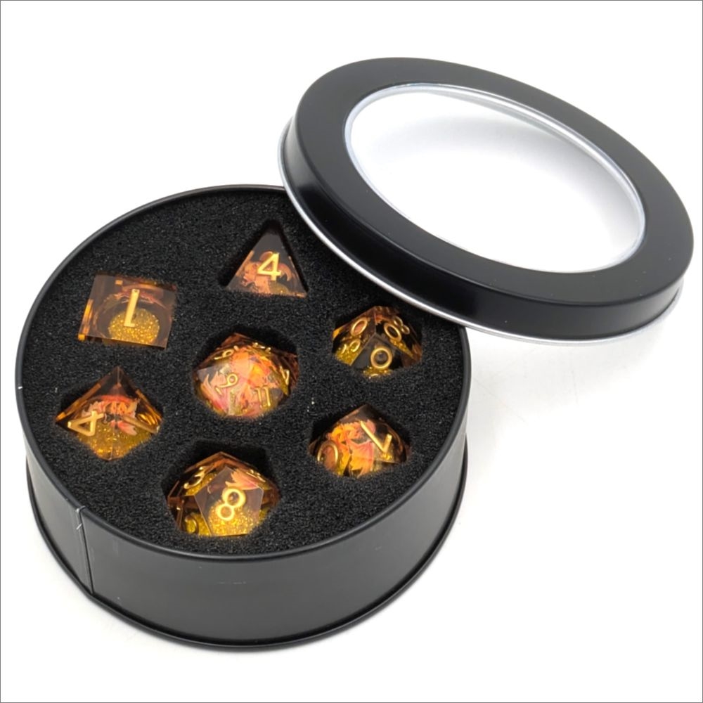 Liquid Core Dragon Dice - Amber - Resin dice set sharp edges - Epic Dwarf Dice