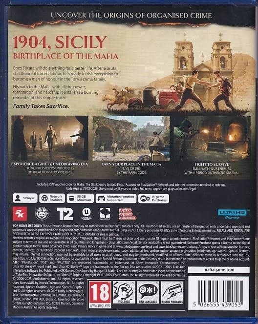 • Brugt Mafia The Old Country til PS5 kommer med æske.