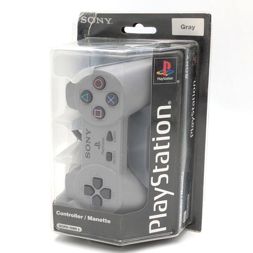 Den originale Playstation controller, uden analog sticks, i original indpakning.