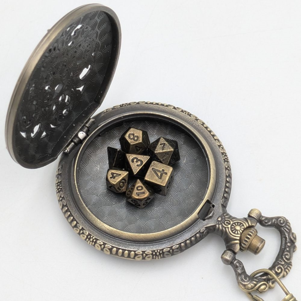 Pocket Watch Edition - Steam Punk - Messing farve - Mini Metal Rollespilsterninger - Epic Dwarf Dice
