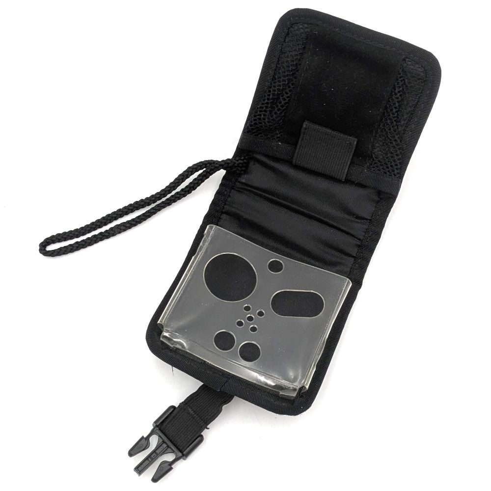 En fed retro carry case til en GameBoy Advance SP konsol, med Pokemon logo på fronten. Den lukkes med spænde og har en bærestrop indbygget.