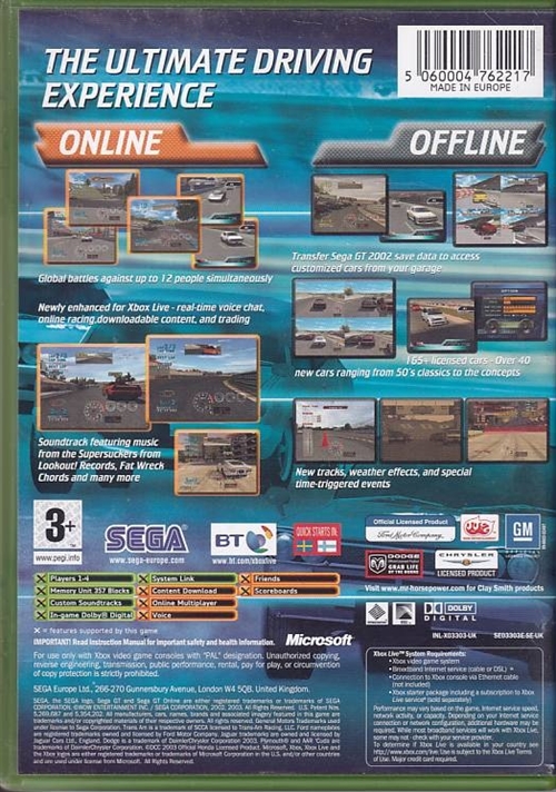 • Brugt Sega GT Online til XBOX kommer med æske og manual.