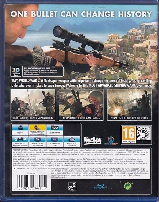 • Brugt Sniper Elite 4 til PS4 kommer med æske.