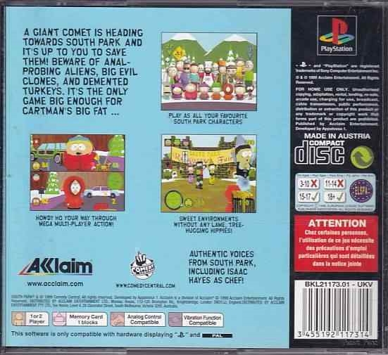 • Brugt South Park til PS1 kommer med æske og manual.