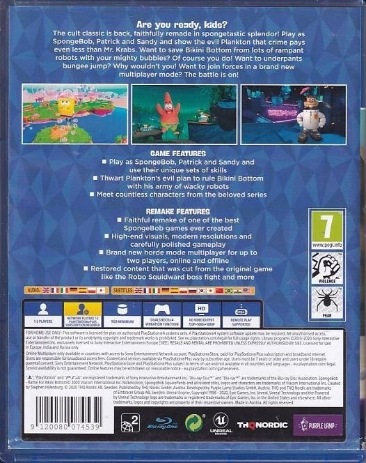 Brugt Playstation 4 spil - Spongebob Squarepants Battle for Bikini Bottom Rehydrated