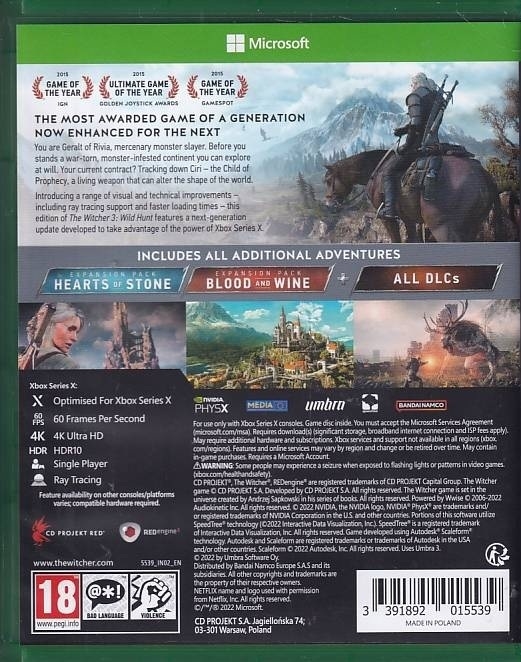 • Brugt The Witcher 3: Wild Hunt - Complete edition til XBSX kommer med æske.