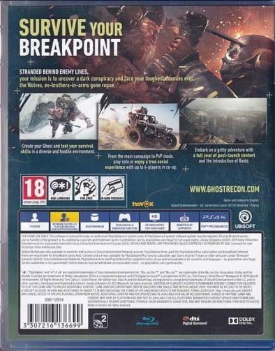 • Brugt - Tom Clancys Ghost Recon Breakpoint til PS4 kommer med æske og manual.