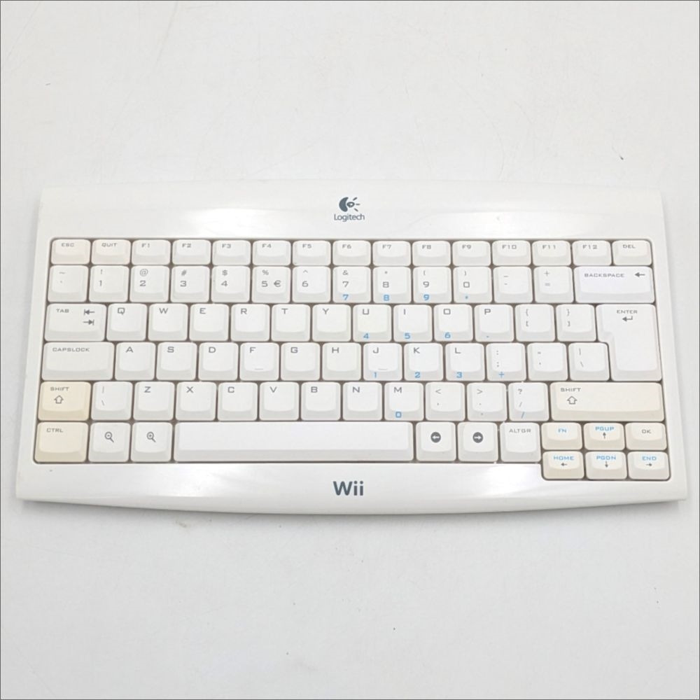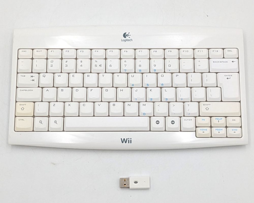 Wii-brandet QWERTY-tastatur, Engelsk layout, produceret af Logitech til brug med en Wii konsol.